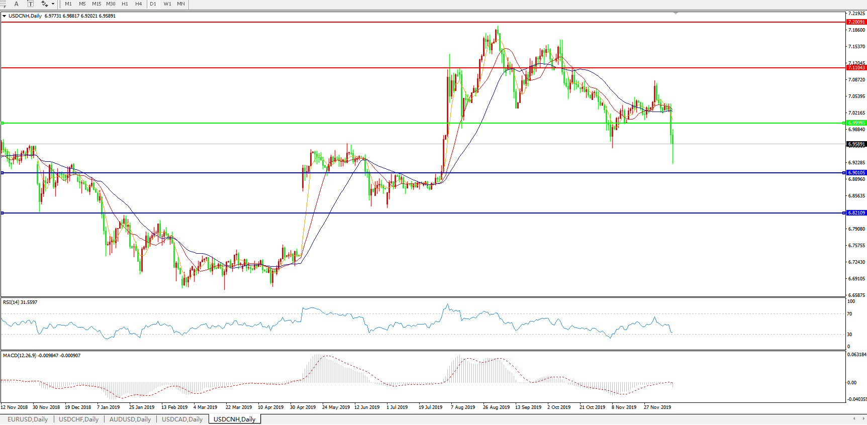 交易策略: 在7.0000之下,看跌,目标价位为6.9010,然后为6.8210。