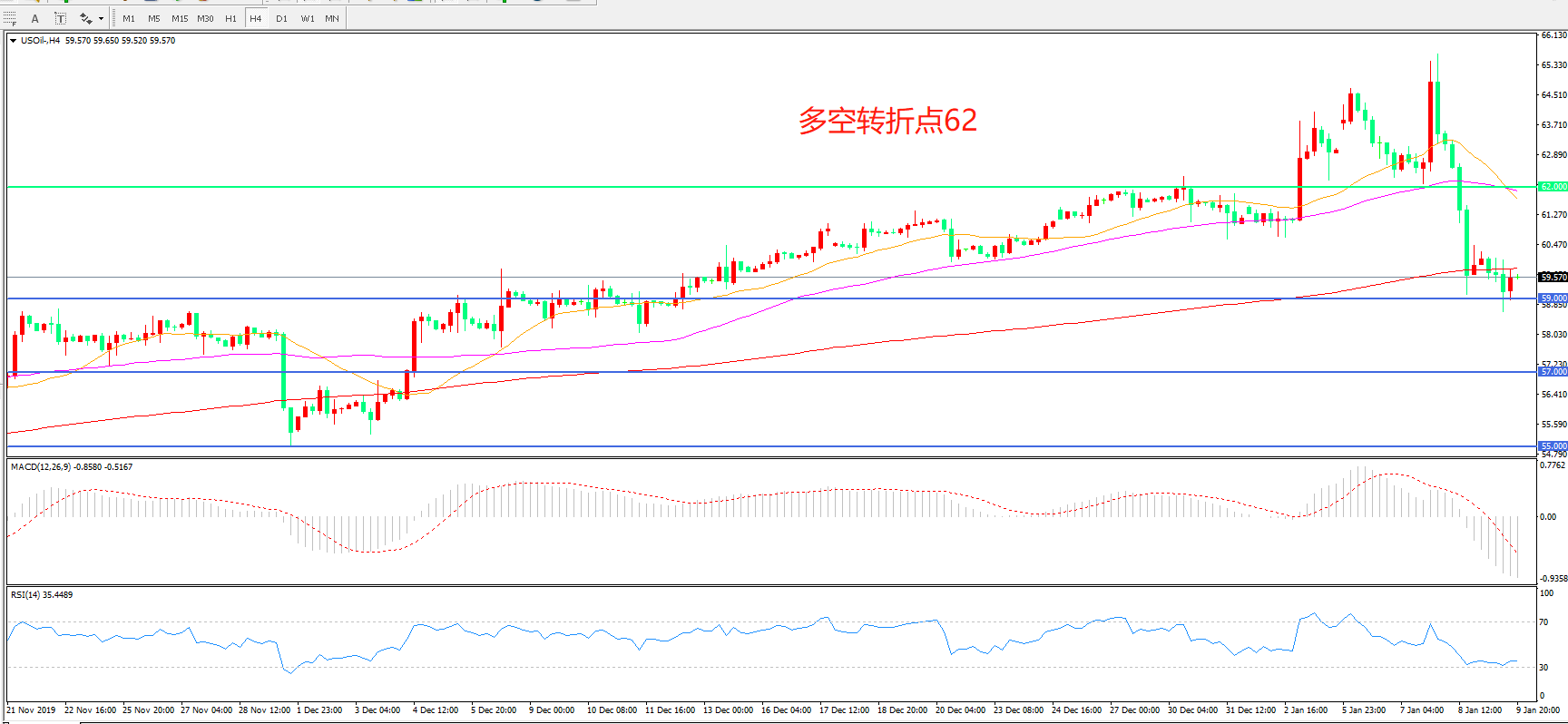 多空转折点:62.00