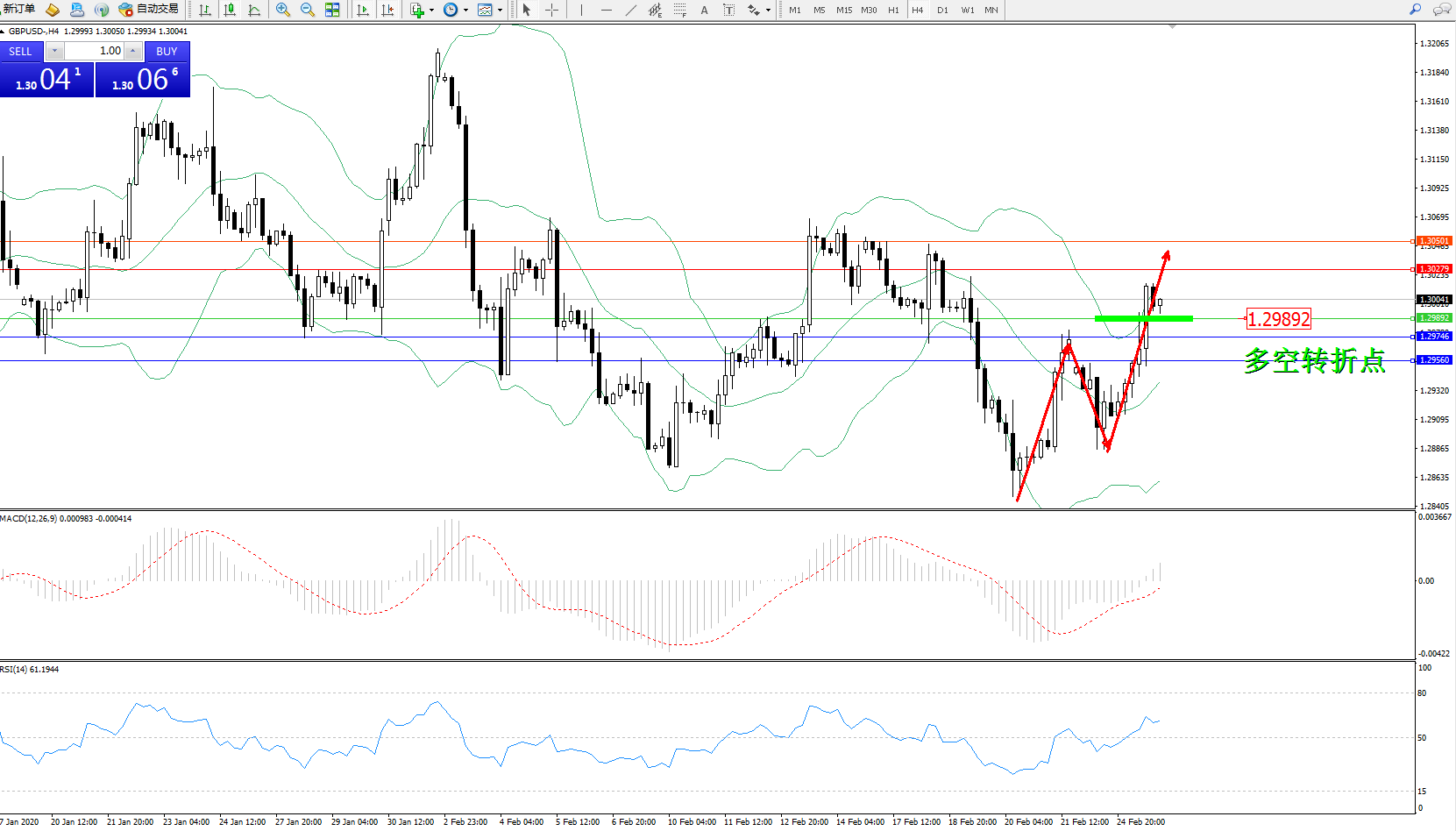交易策略:1.29892上方看涨,目标1.302791.30501