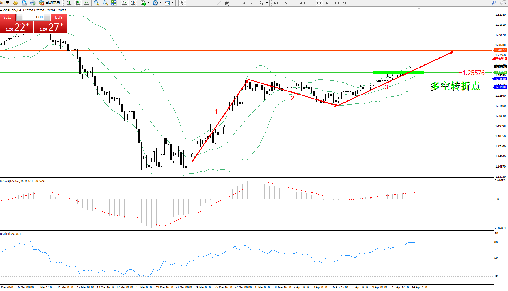 交易策略:1.25576上方看涨,目标1.27129、1.28077