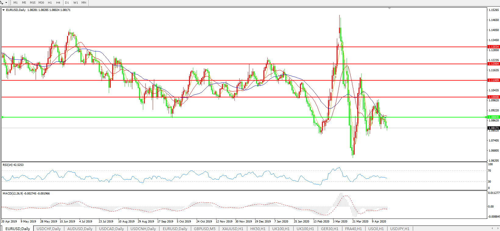 欧元兑美元EURUSD   日线图: