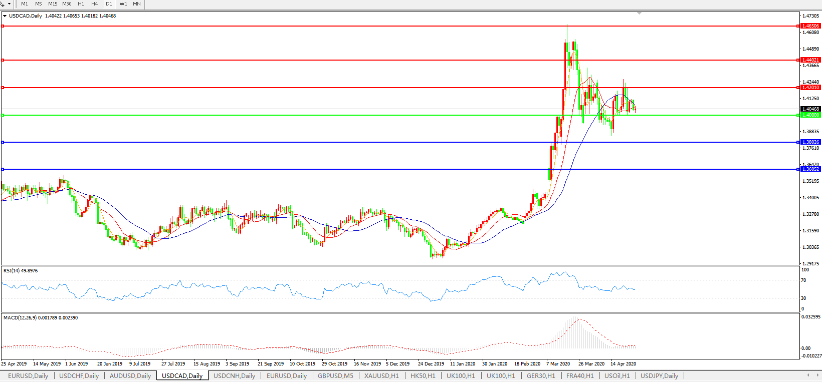 交易策略: 在1.4000之上,看涨,目标价位为1.4200、1.4400