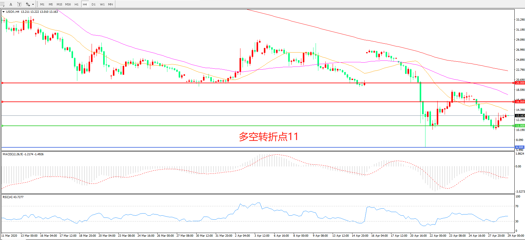 美国原油USOIL 4小时图