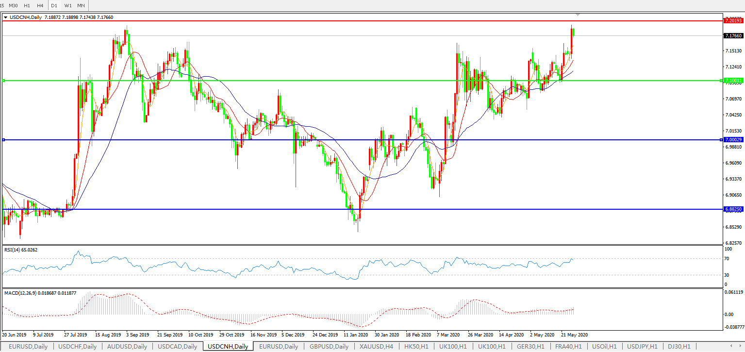 美元兑人民币USDCNH 日线图: