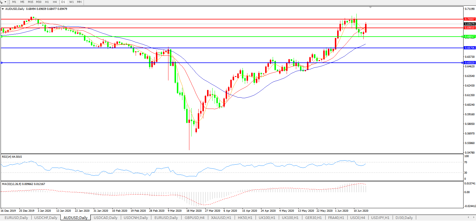 澳元兑美元AUDUSD    日线图: