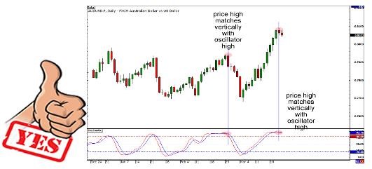 指标的高点或低点必须和价格的高点或低点排列在同一条垂直线上。