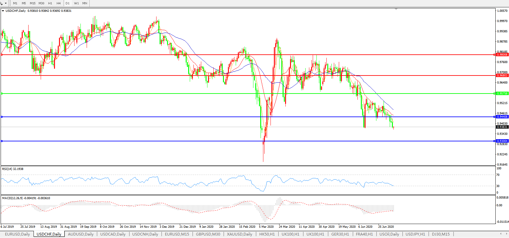 美元兑瑞郎USDCHF    日线图: