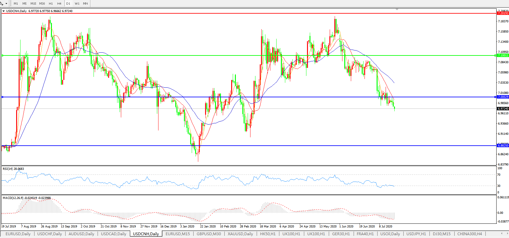美元兑人民币USDCNH 日线图: