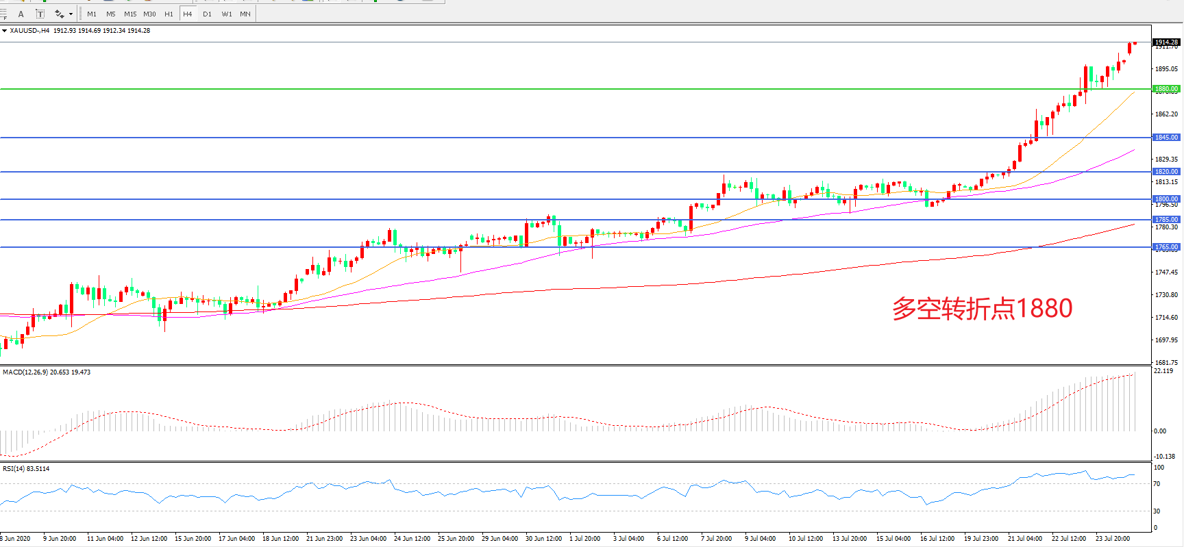 多空转折点:1880.00