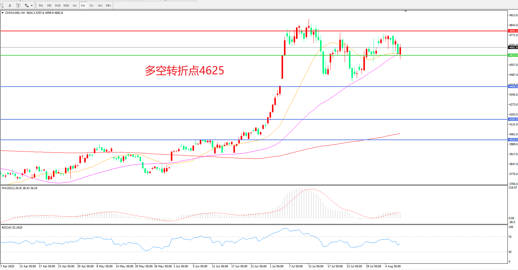 多空转折点:4625.00