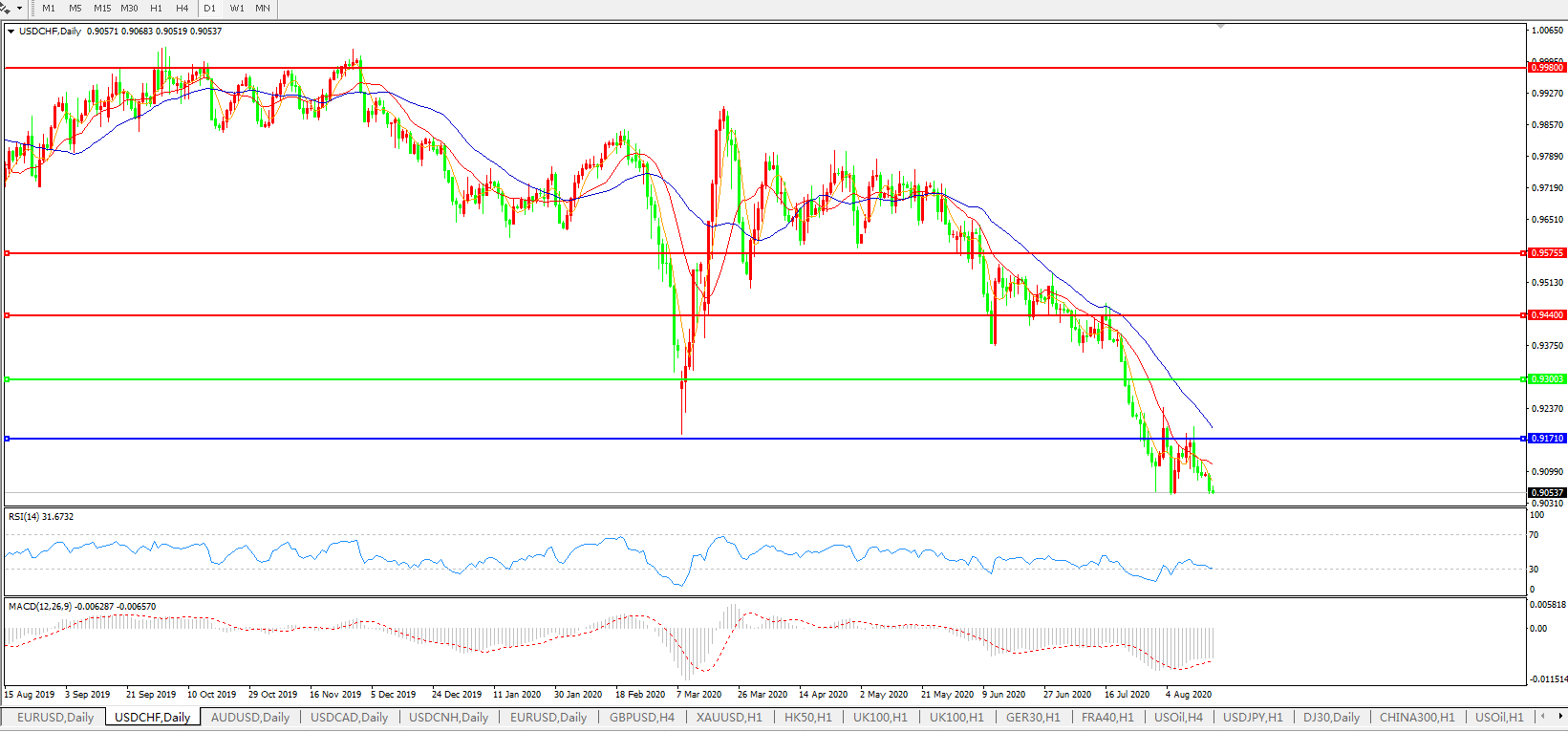 技术面简析:日线图均线维持空头排列,汇价持续小幅走弱,MACD于0轴下方再度下行且量能0轴下再度缩量,RSI持续走弱,预计短期汇价大概率将进一步下行。
