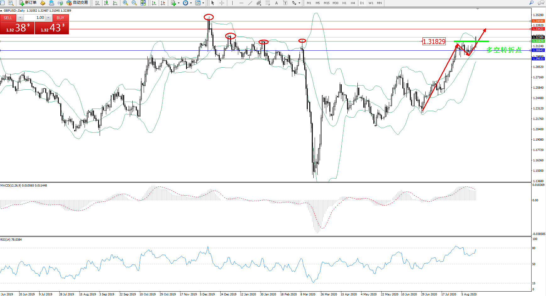 交易策略:1.31829上方看涨,目标1.33423、1.34444