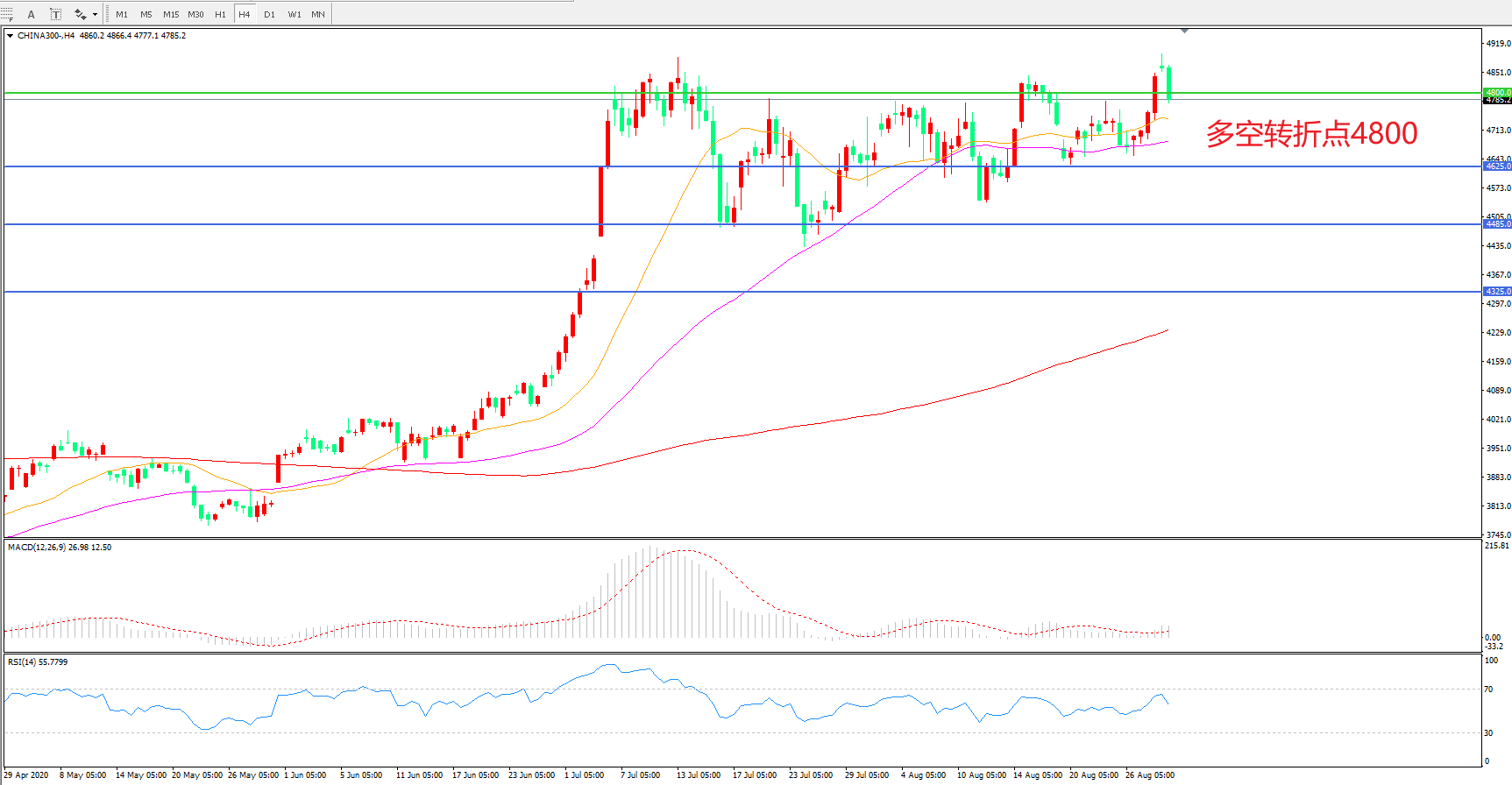 多空转折点:4800.00