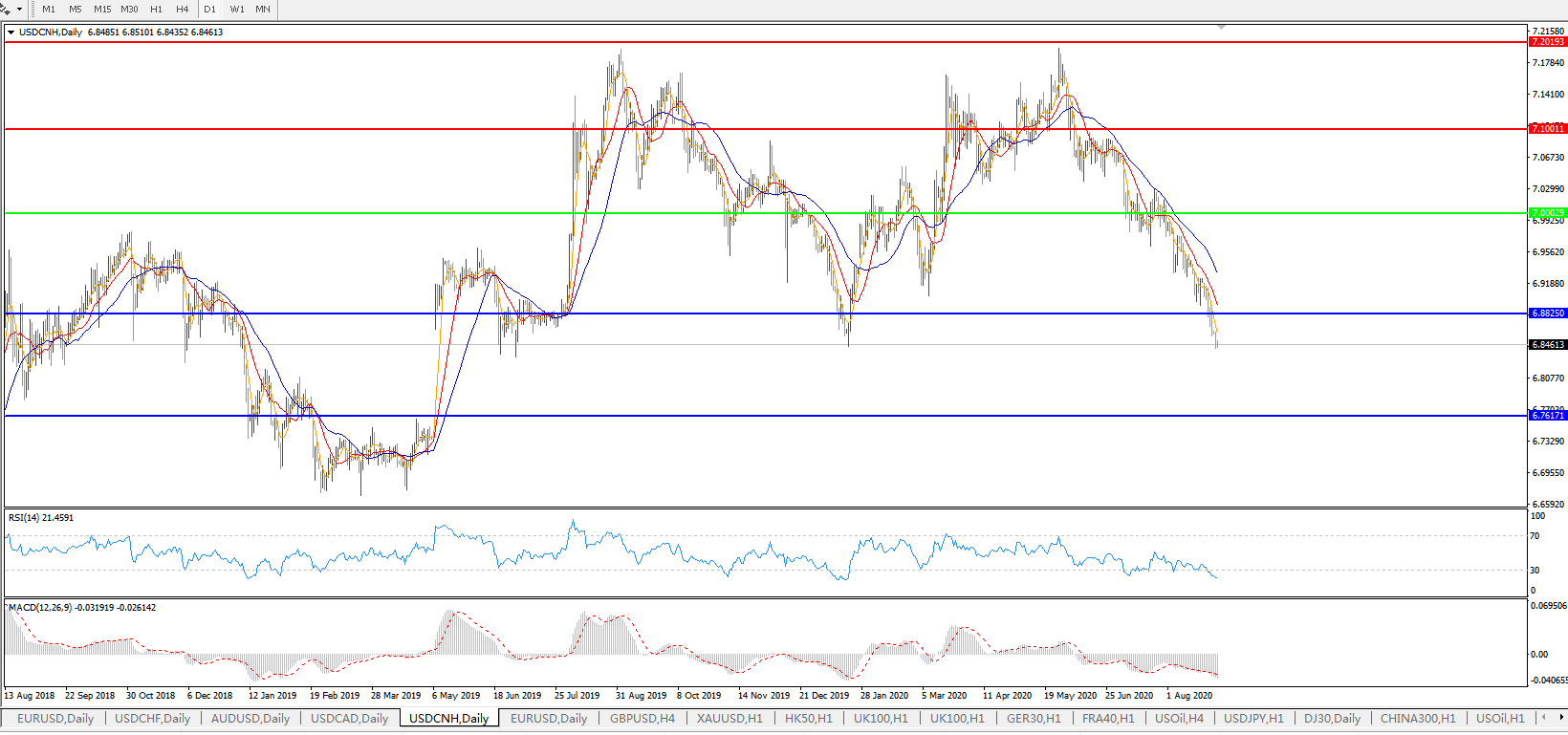 美元兑人民币USDCNH    日线图: