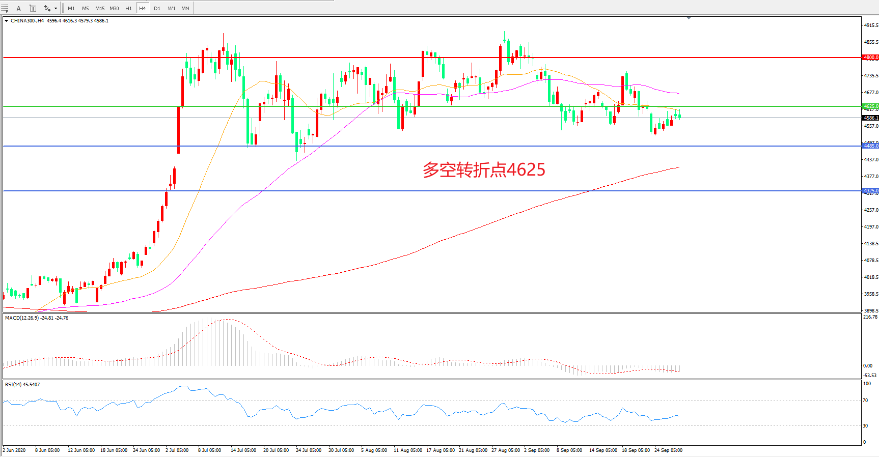 多空转折点:4625.00