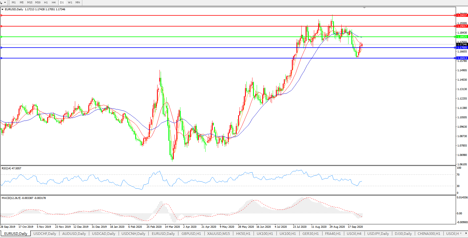 欧元兑美元EURUSD   日线图: