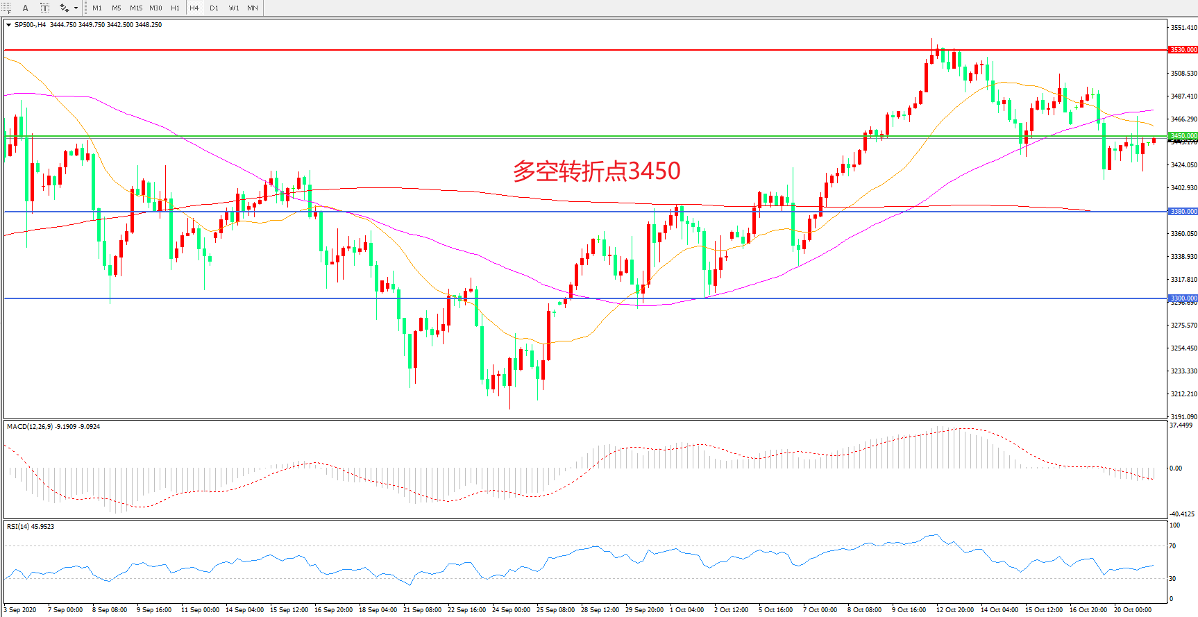 多空转折点:3450.00