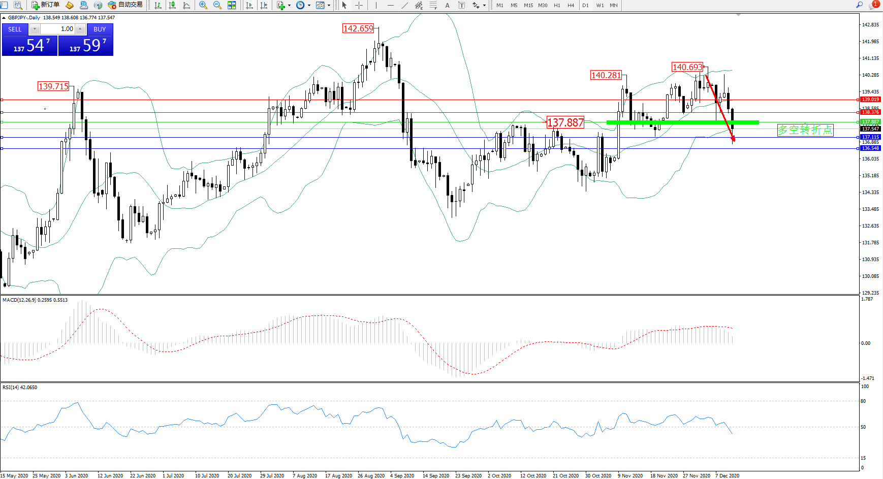 交易策略:137.887下方看跌,目标137.115、136.548