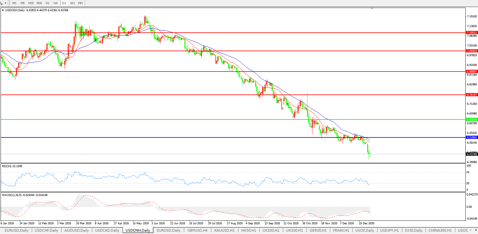 美元兑人民币USDCNH    日线图: