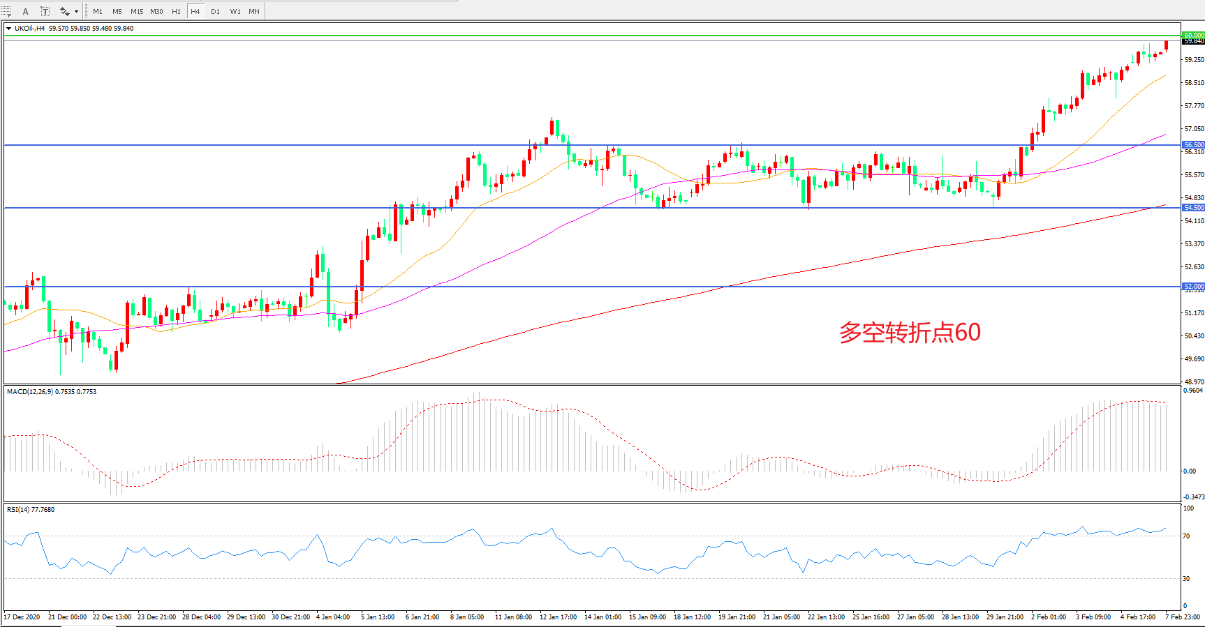 多空转折点:60.00
