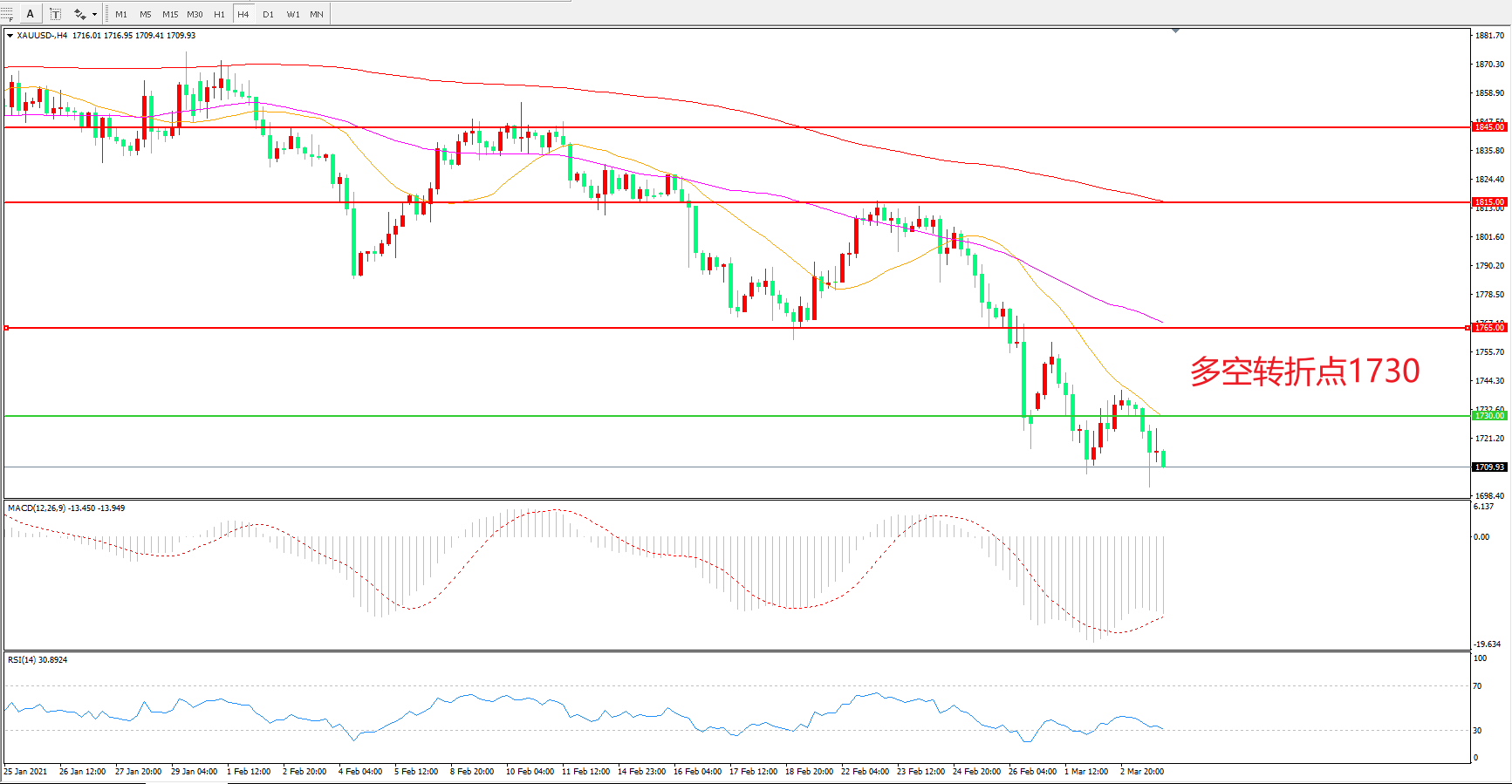 多空转折点:1730.00