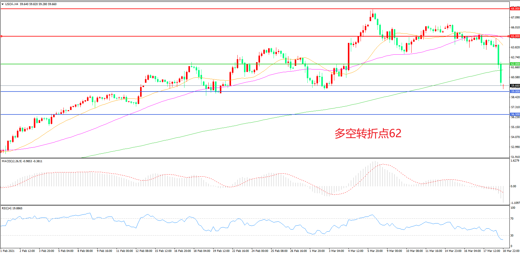交易策略:在62.00之下看跌,目标59.00    56.50