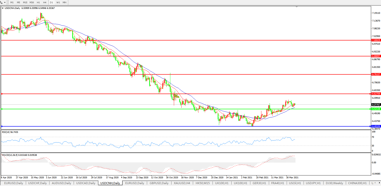 美元兑人民币USDCNH    日线图: