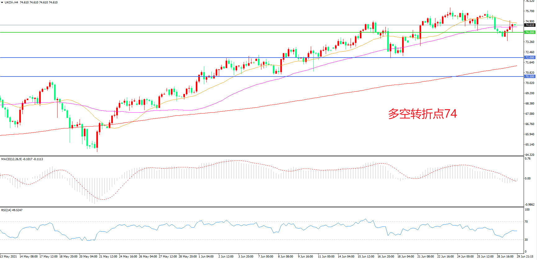 多空转折点:74.00