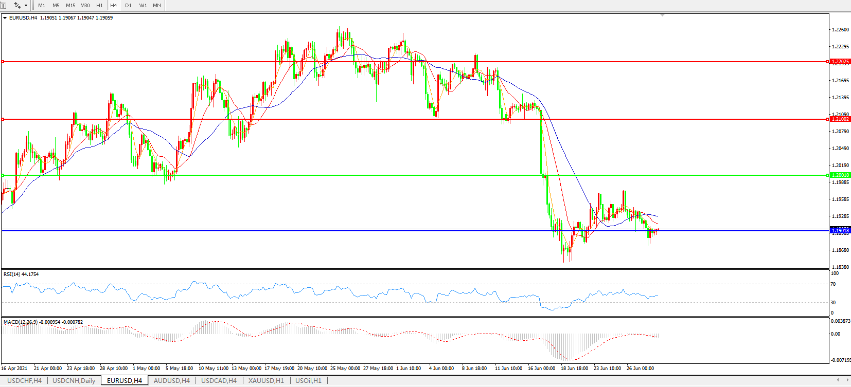 欧元兑美元EURUSD   4小时图: