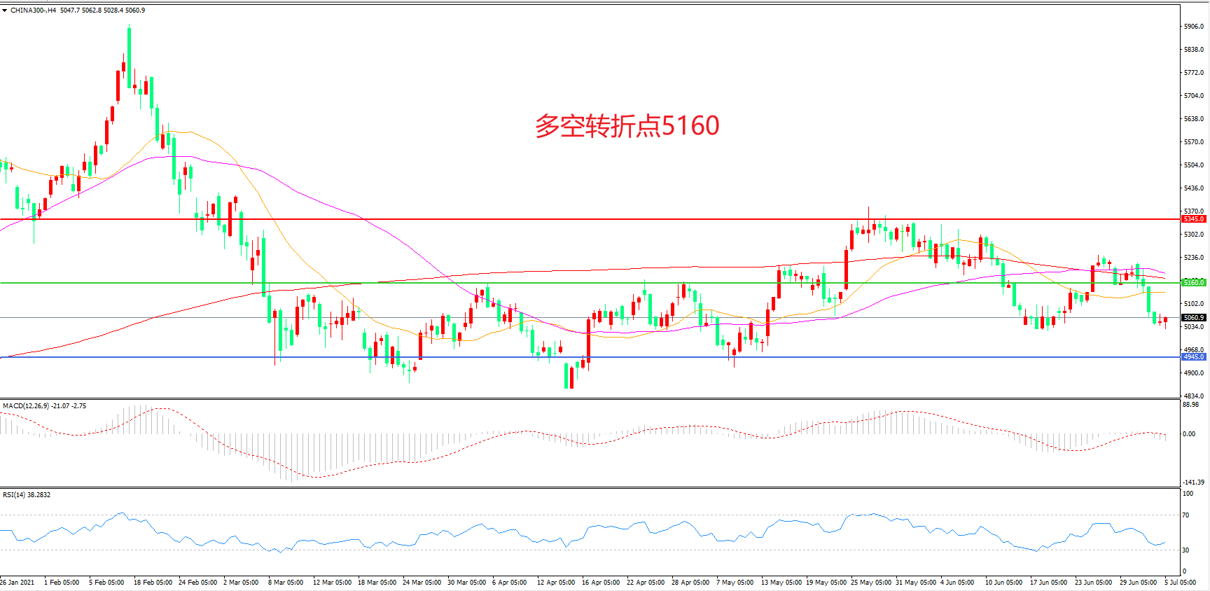 多空转折点:5160.00