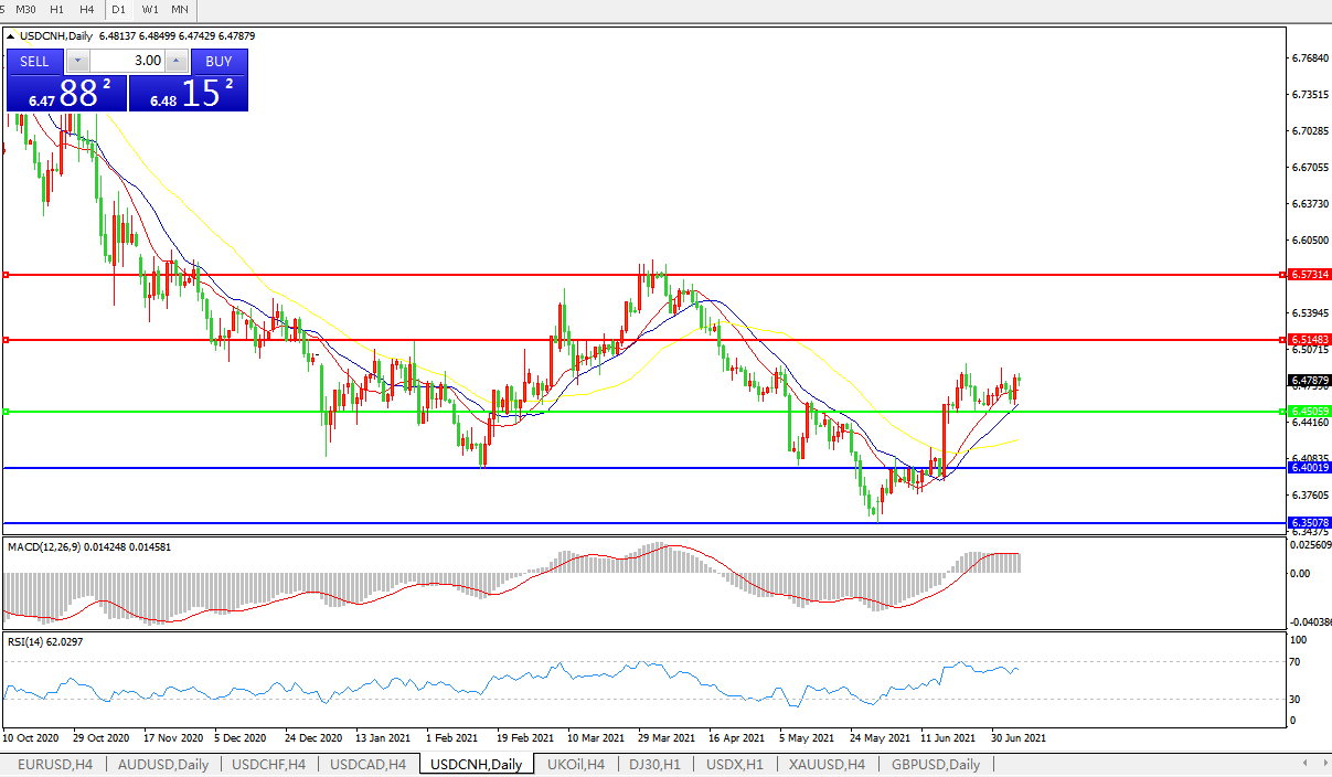 交易策略: 在6.4505之上,看涨,目标价位为6.5150,然后为6.5730。备选策略: 在6.4505之下,看跌,目标价位为6.4000,然后为6.3505。