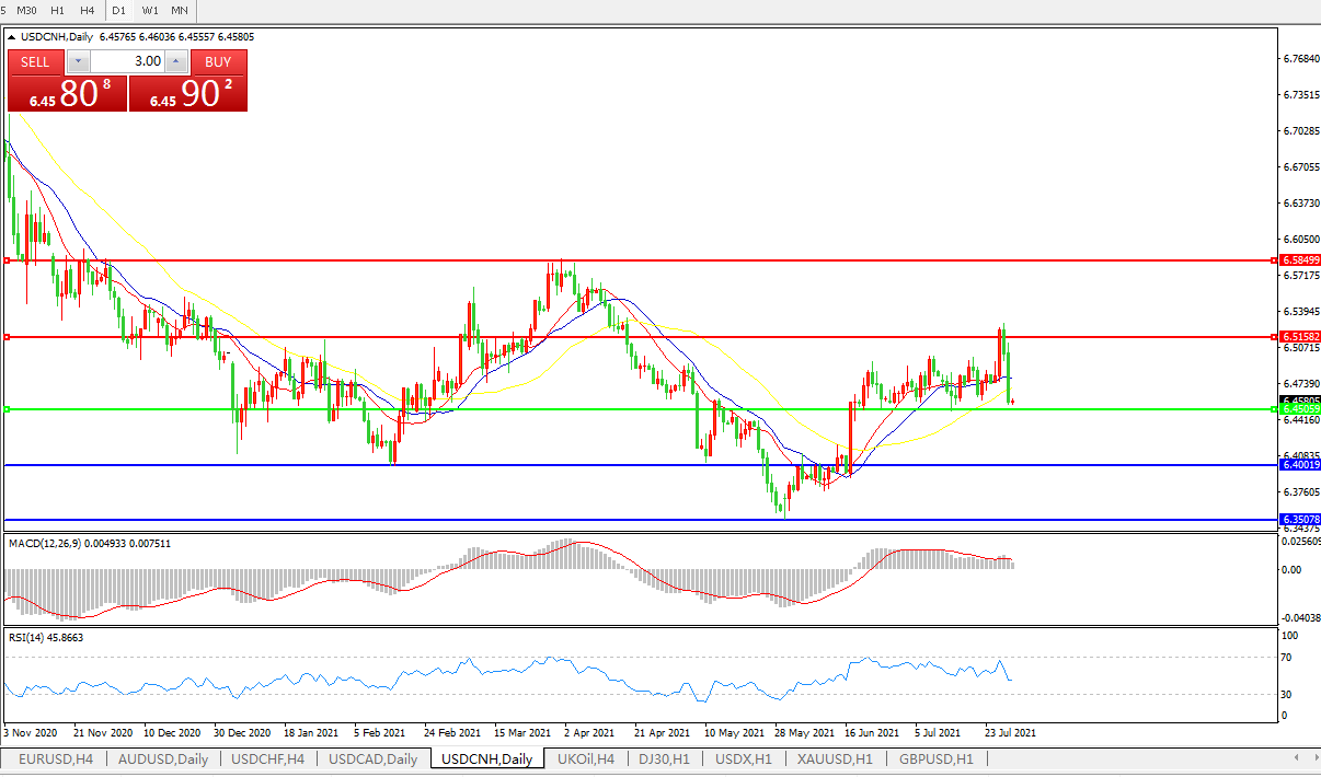 交易策略: 在6.4505之上,看涨,目标价位为6.5150,然后为6.5850。