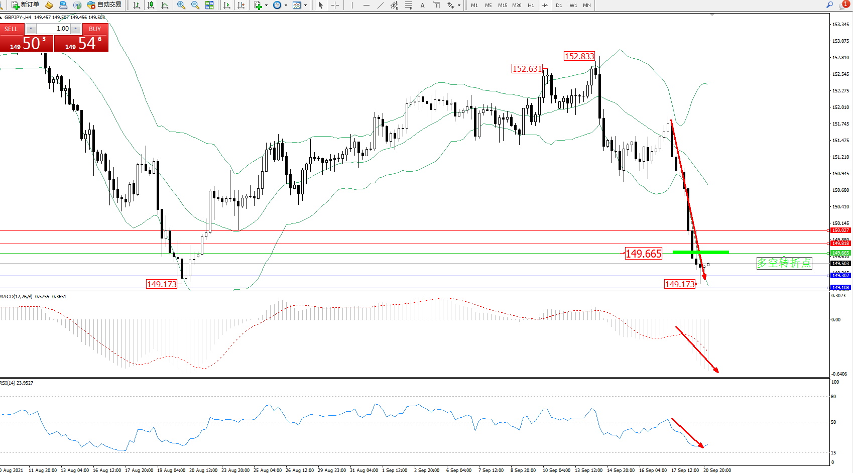 交易策略:149.665下方看跌,目标149.302149.108