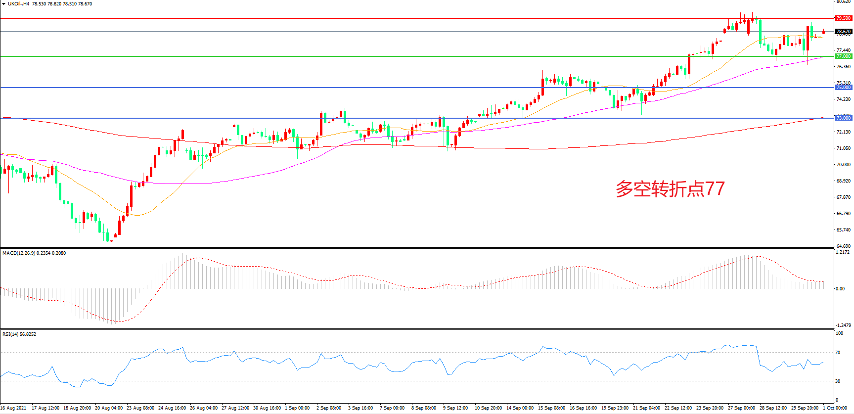 多空转折点:77.00