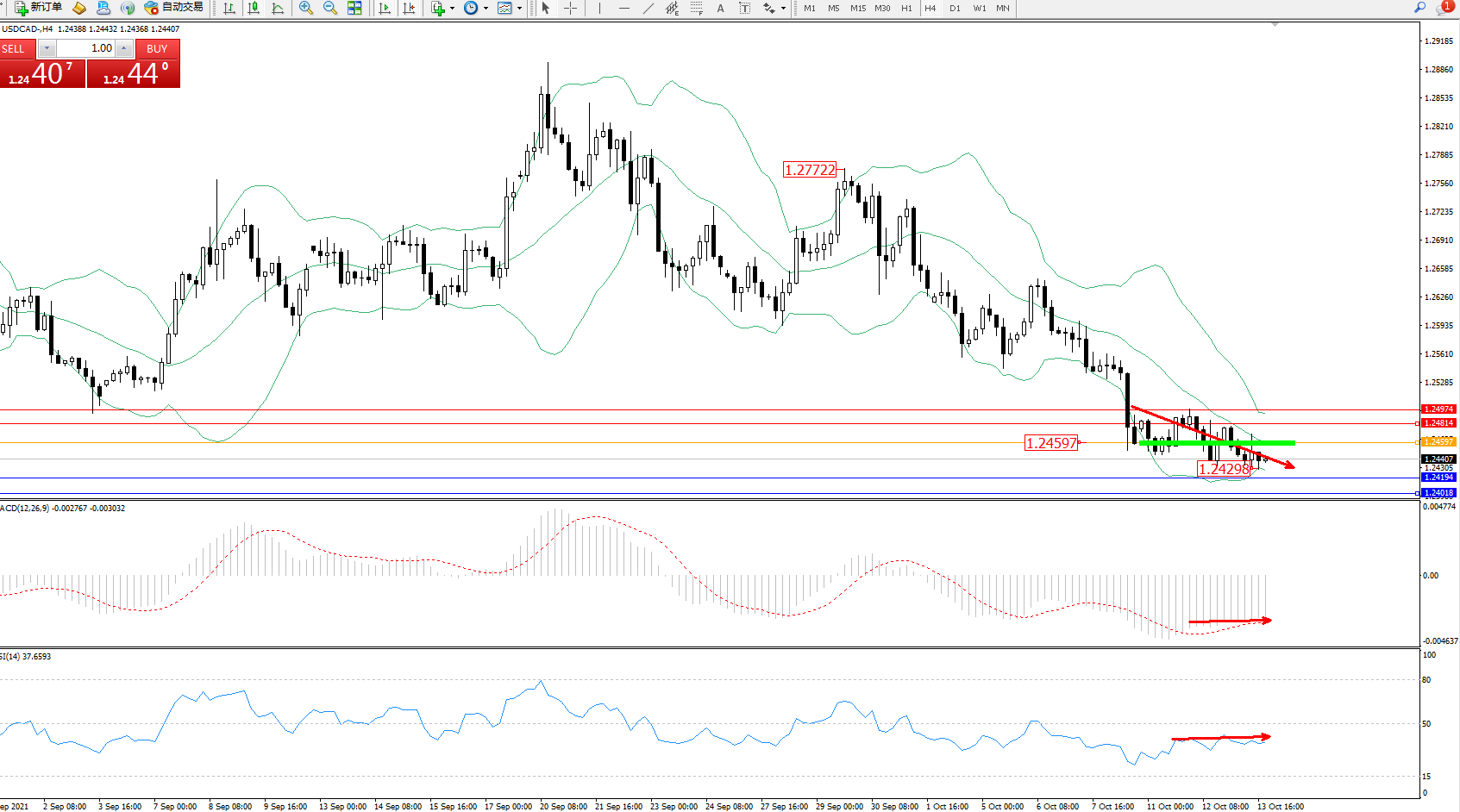 美元加元USDCAD——日K线图显示:
