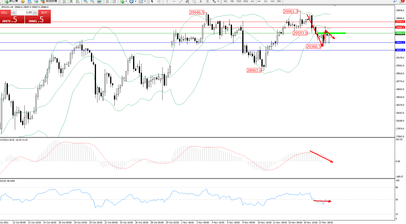 日经指数JPN225——4小时K线图显示: