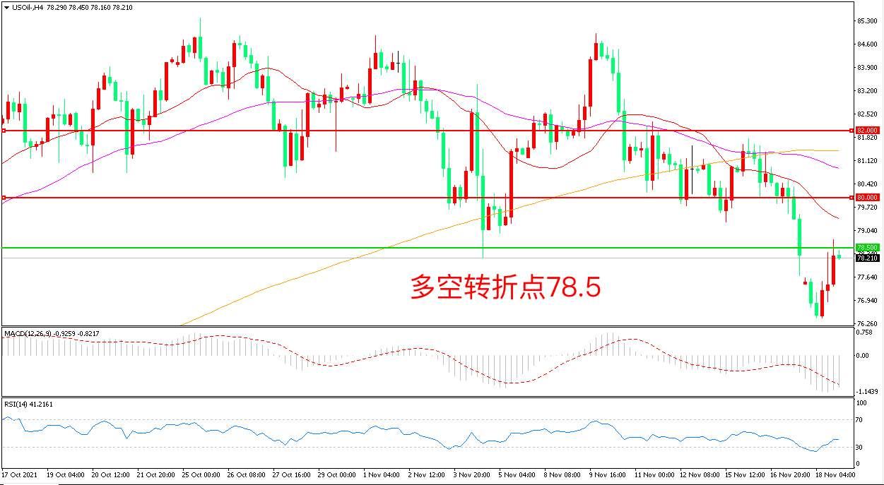 交易策略:在78.50之下看跌,目标76.00 74.00