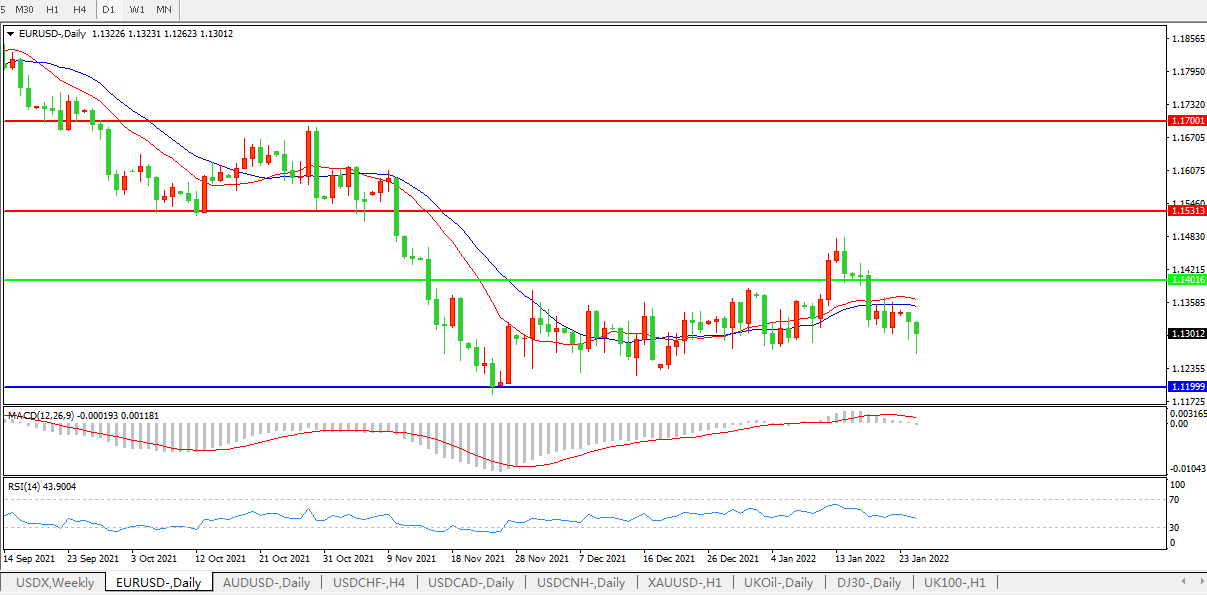 联邦基金利率期货走势已经完全消化了美联储将在3月会议上升息25个基点,并在2022年再升息三次的可能性。欧元兑美元一度跌0.6%至1.1263,创一个月来最低水平;因投机和期权需求以及瑞郎走软,欧元兑美元缩小跌幅;欧元兑瑞郎连续第二天走高。