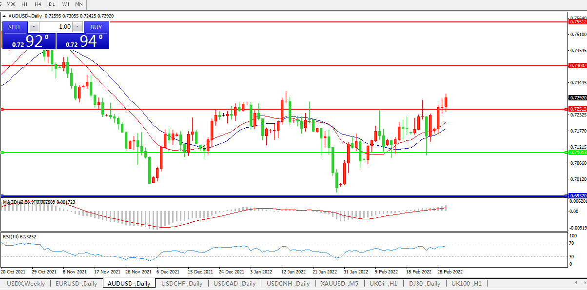 压制位:0.7250 0.7400