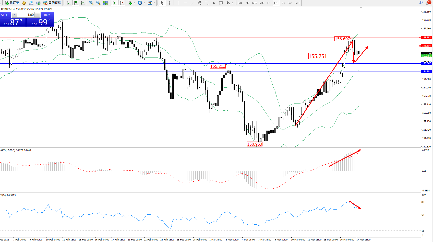 交易策略:155.751上方看涨,目标156.308、156.753