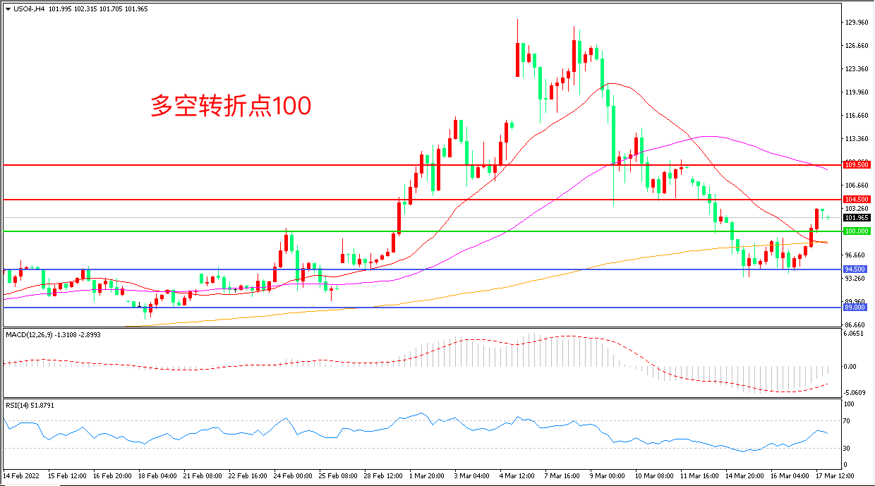 交易策略:在100.00之上看涨,目标104.50           109.50