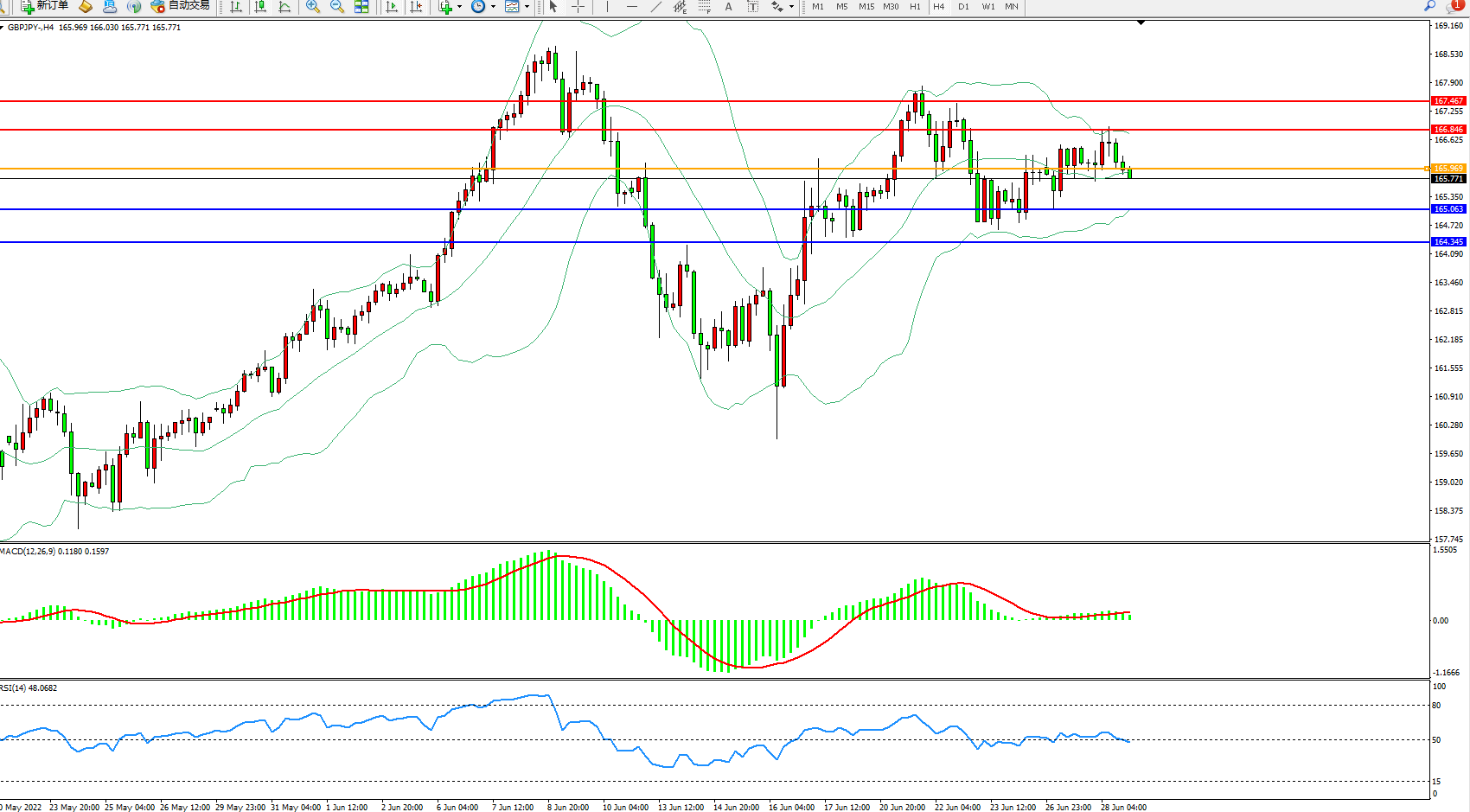 交易策略:166.969下方看跌,目标165.063、164.345