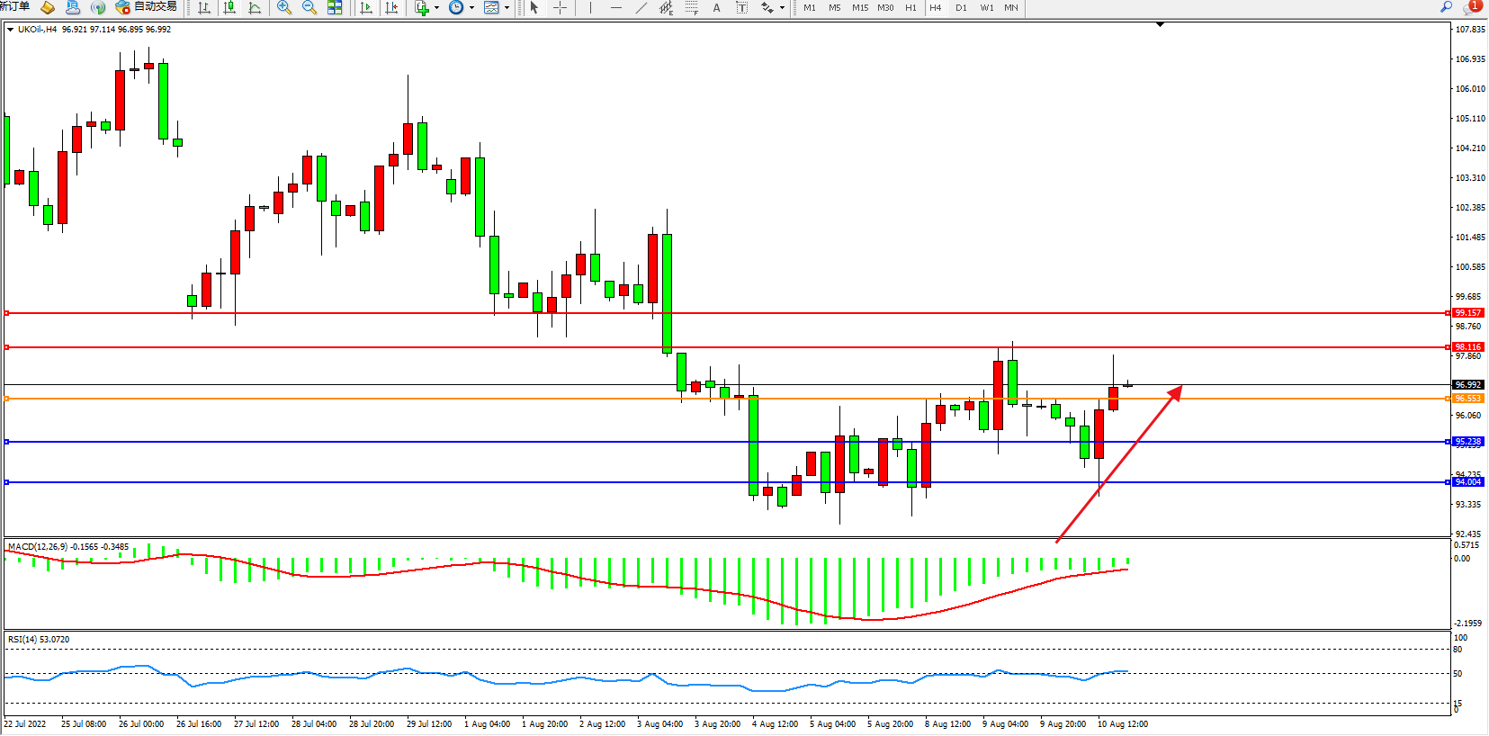 布油UKOil——4小时K线图显示: