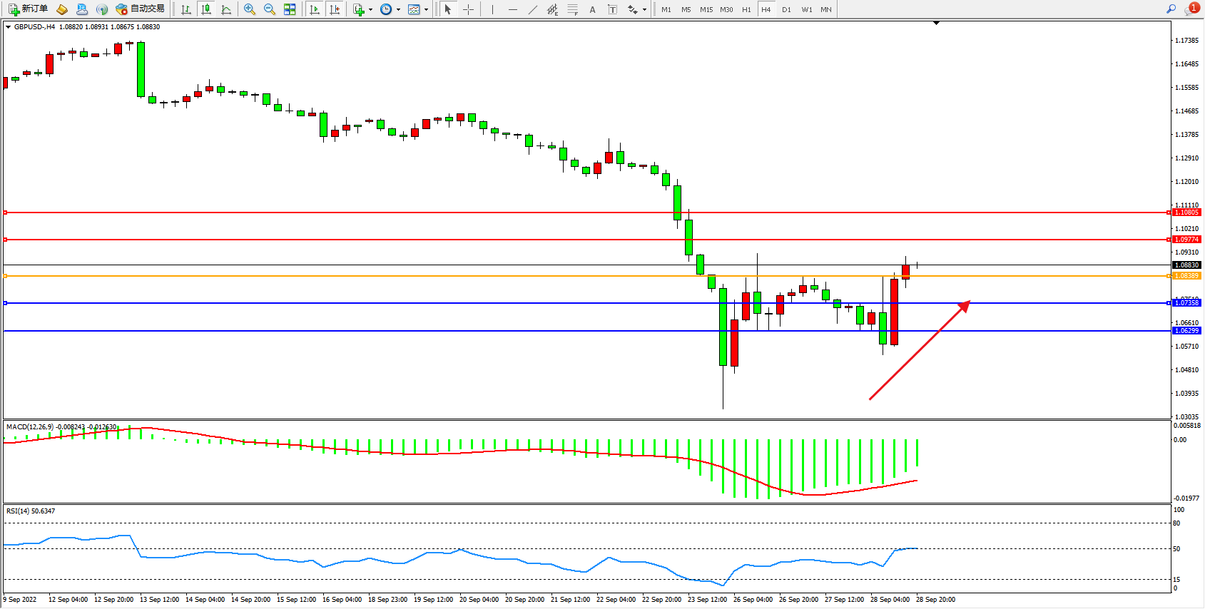 英镑兑美元维持1.08830附近震荡,英国隔夜指数掉期市场显示,英国央行在11月3日前加息至3.5%的几率为80%,而加息至3.75%的几率为20%。英国央行首席经济学家皮尔认为新经济计划带来的影响需要对应做出重大的货币政策回应。