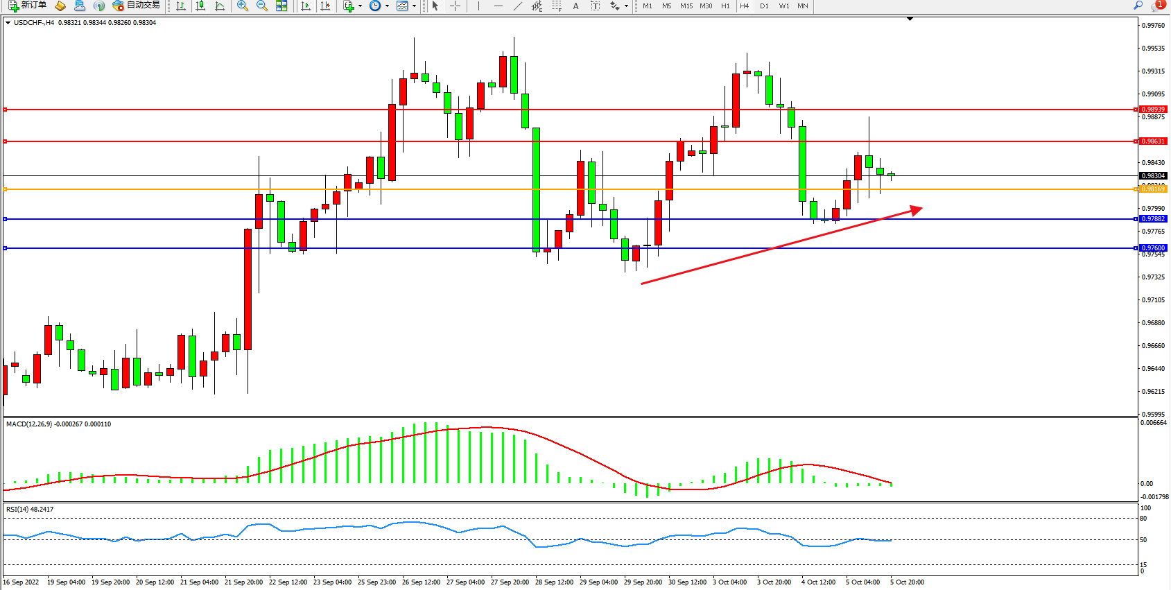 美元瑞郎USDCHF——4小时K线图显示: