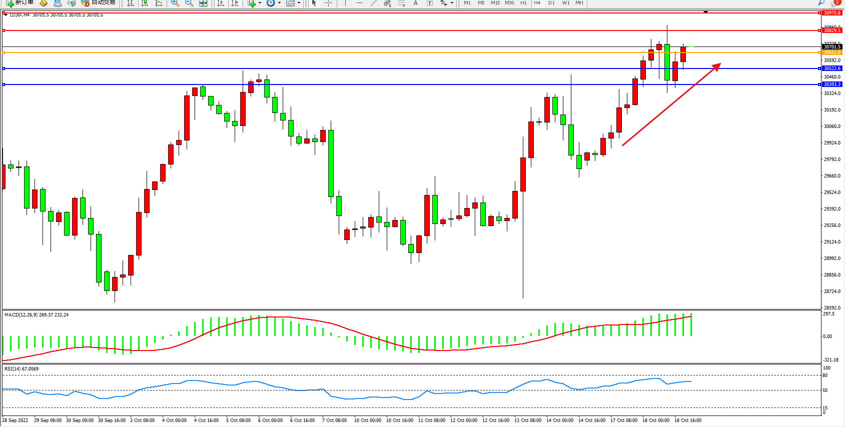 道琼斯指数10月18日(周二)收盘上涨338.57点,涨幅1.12%,报30524.39点;美国银行调查的基金经理们对美国股市和全球经济增长的看法显示出“全面投降”的迹象,为2023年的股市反弹铺平了道路。