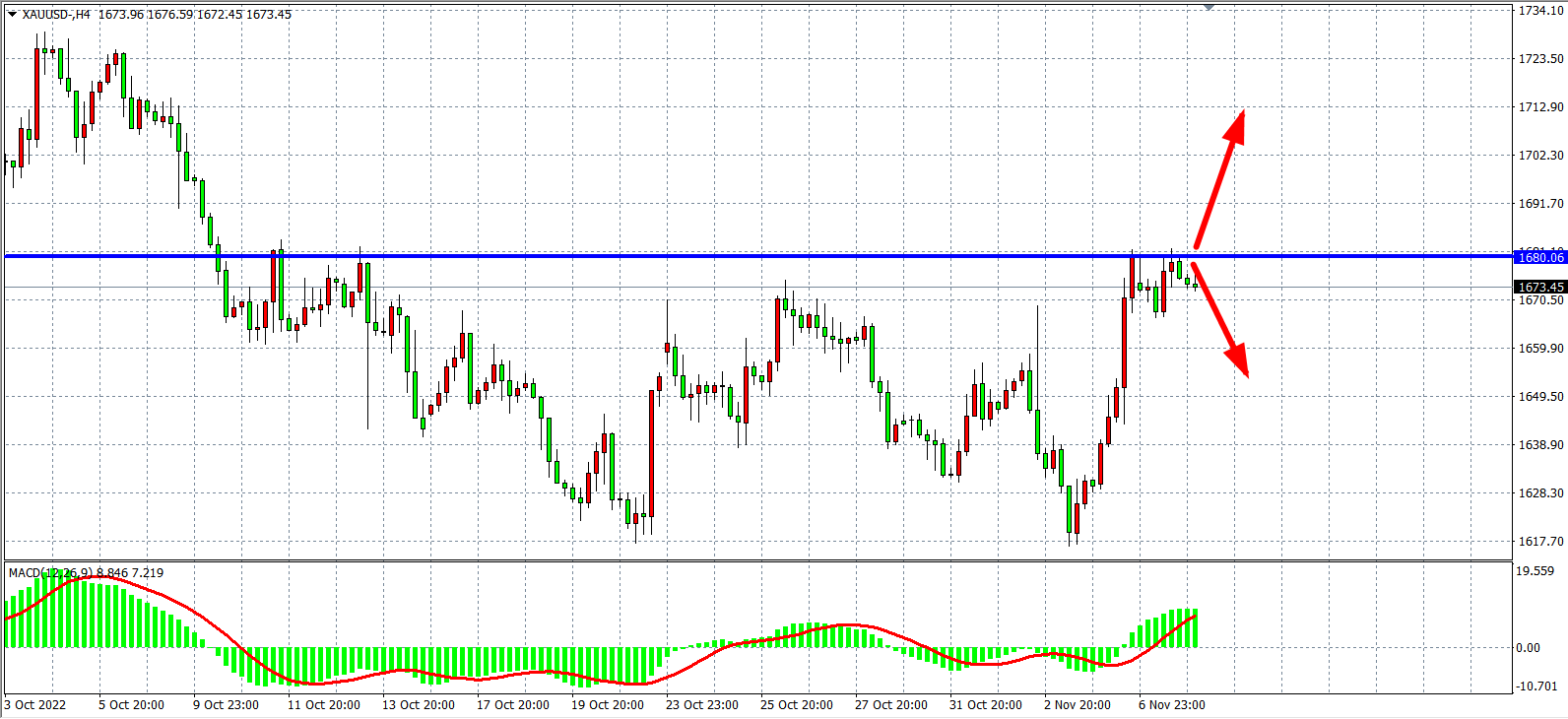 交易策略:在1680.00之上看涨,目标1690.00         1700.00
