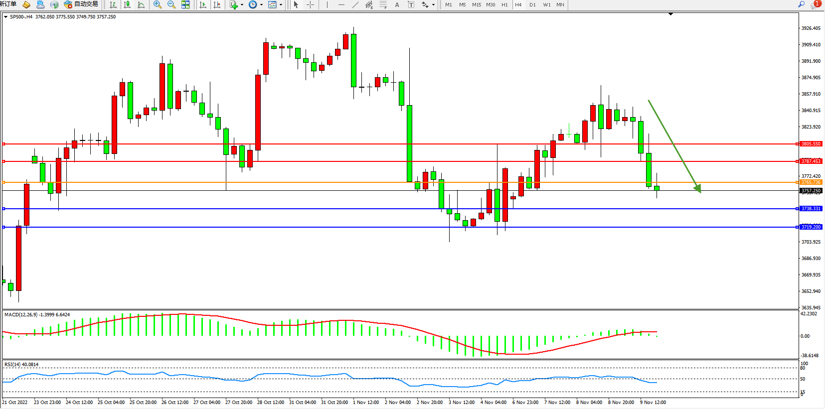 标普SP500——4小时K线图显示: