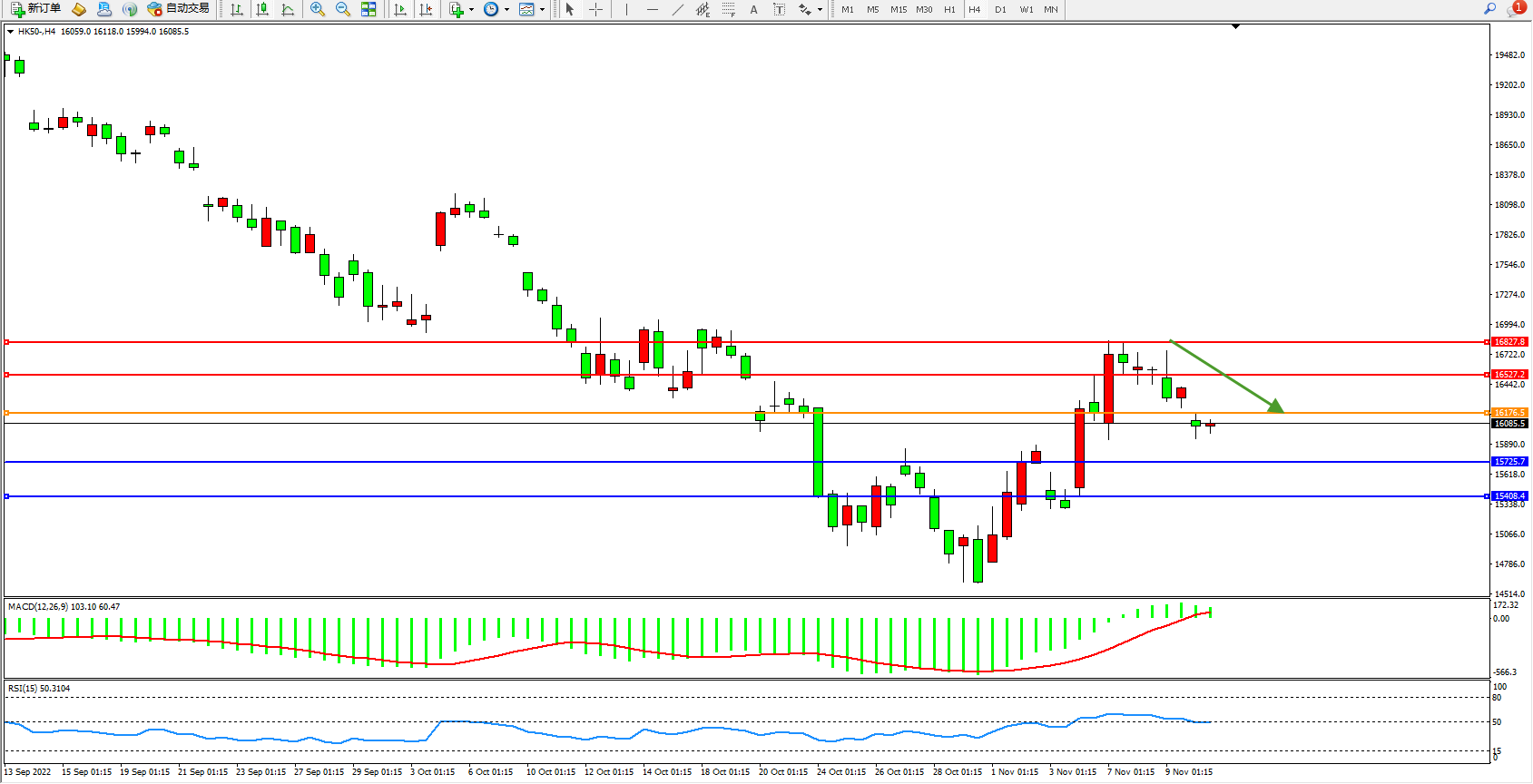 恒指HK50 4小时图