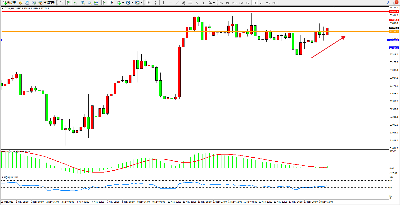 道琼斯工业平均指数收涨199.37点,涨幅0.59%,报33745.69点,本周累跌0.01%。市场有点处于观望状态,推动所有股市走势的当然是美联储的政策,未来几周内,不太可能看到薪资压力或通胀压力可能缓解的任何真正证据。